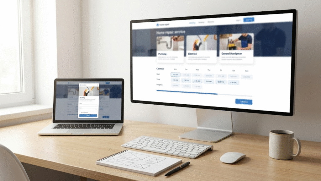 Simple booking flow for home repair visits. Helps customers select a service and book a time without stress.