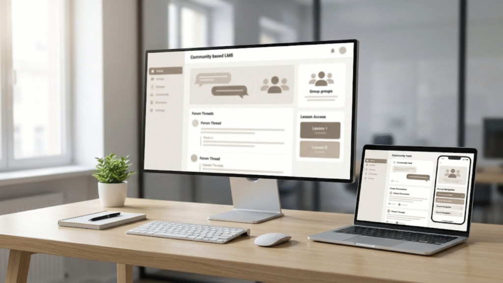 Community LMS setups with forums, groups and lesson access. Helps groups learn together with clear content and shared support.