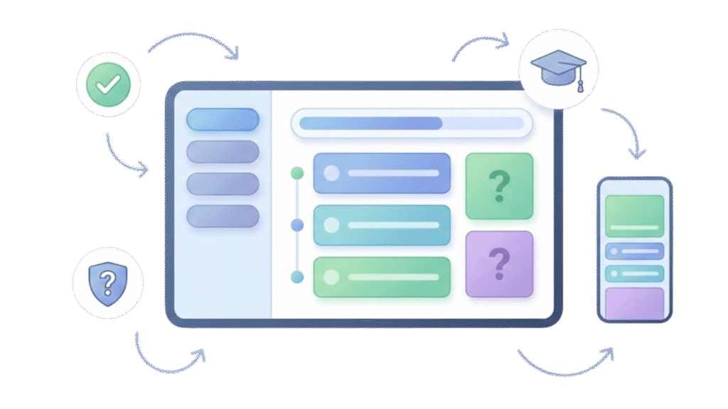 Easy to follow course structures with clean lessons, tests and student dashboards that help people learn without delay or confusion.